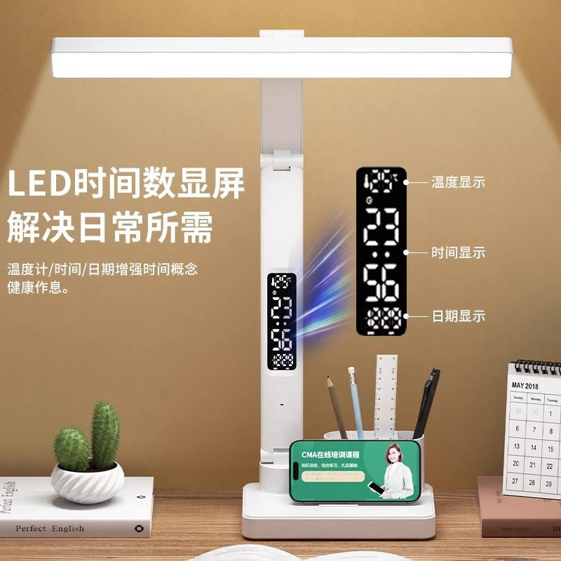 台灯学习专用宿舍灯学生磁吸酷毙灯书桌时钟充电式床头灯护眼神器