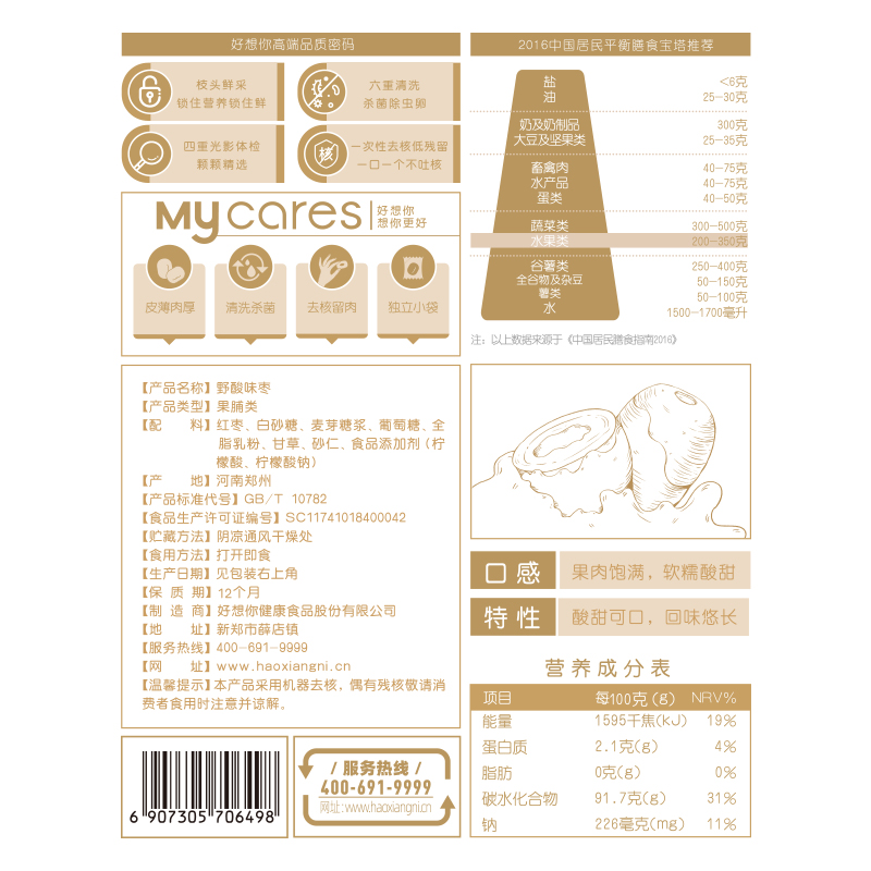好想你野酸味枣金丝蜜枣红枣办公室儿童开胃休闲小吃零食