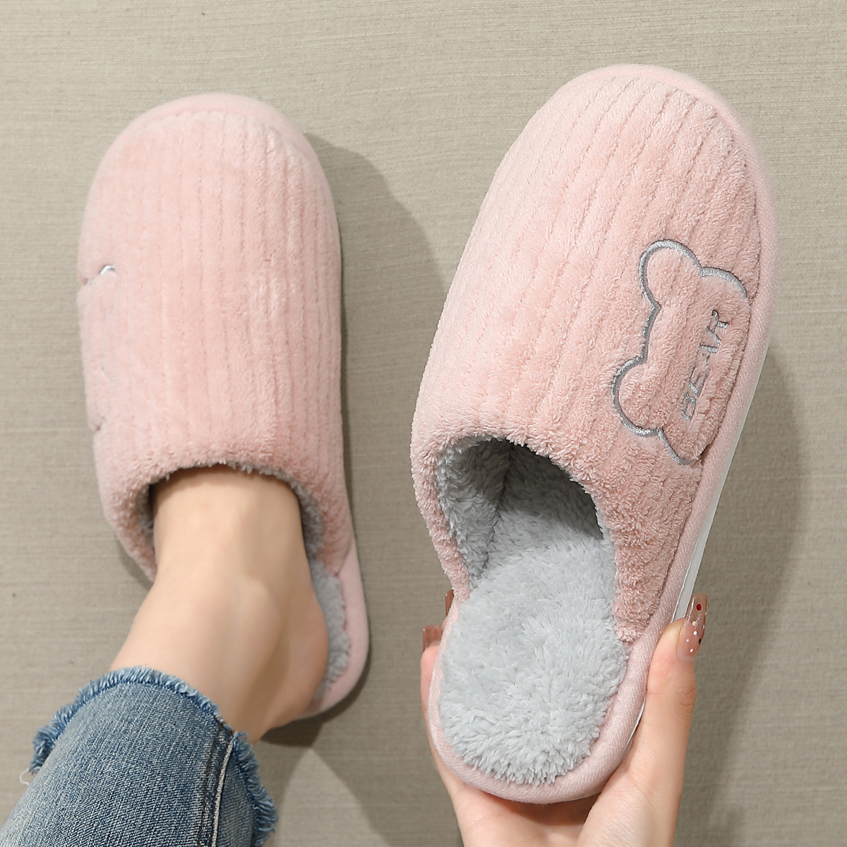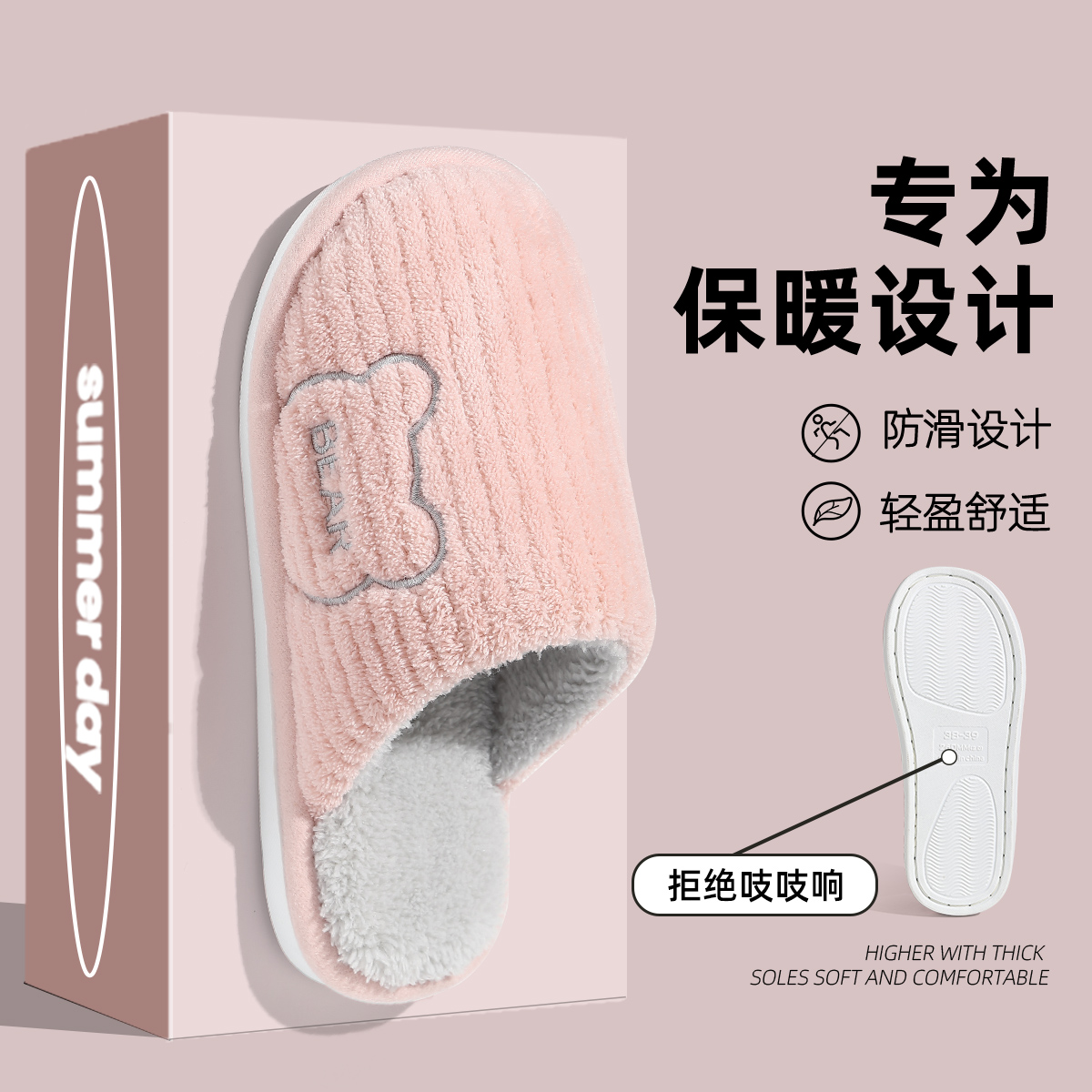 棉拖鞋家居室内女士秋冬季2024毛绒防滑家用新款厚底拖鞋冬天居家