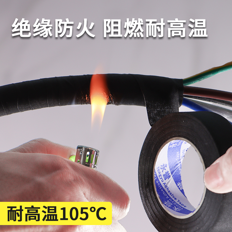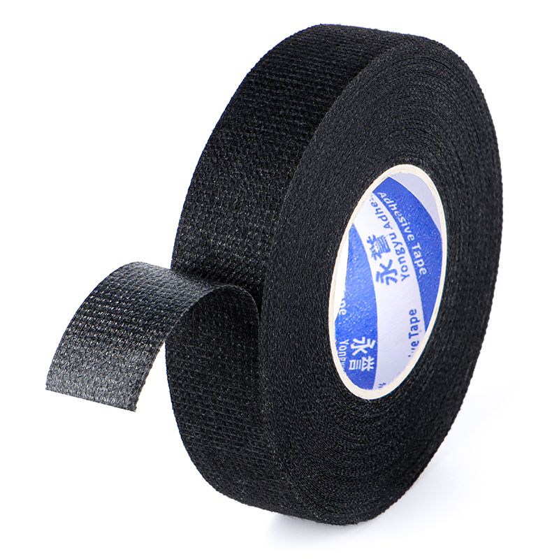 汽车线束胶带阻燃耐高温发动机舱缠绕绒布胶带超粘降噪黑色绝缘胶布消除中控汽车门车体摩擦异响线束胶带