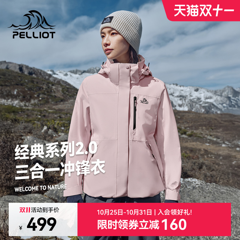 【成毅同款】伯希和经典2.0户外冲锋衣男新款防风三合一登山服女