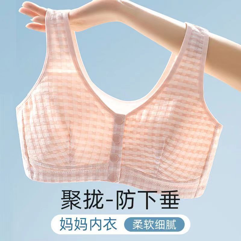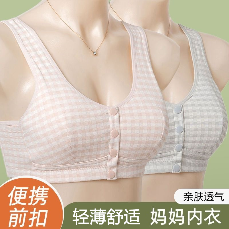 中老年里棉前扣内衣妈妈文胸无钢圈大码背心人老人无海绵运动胸罩