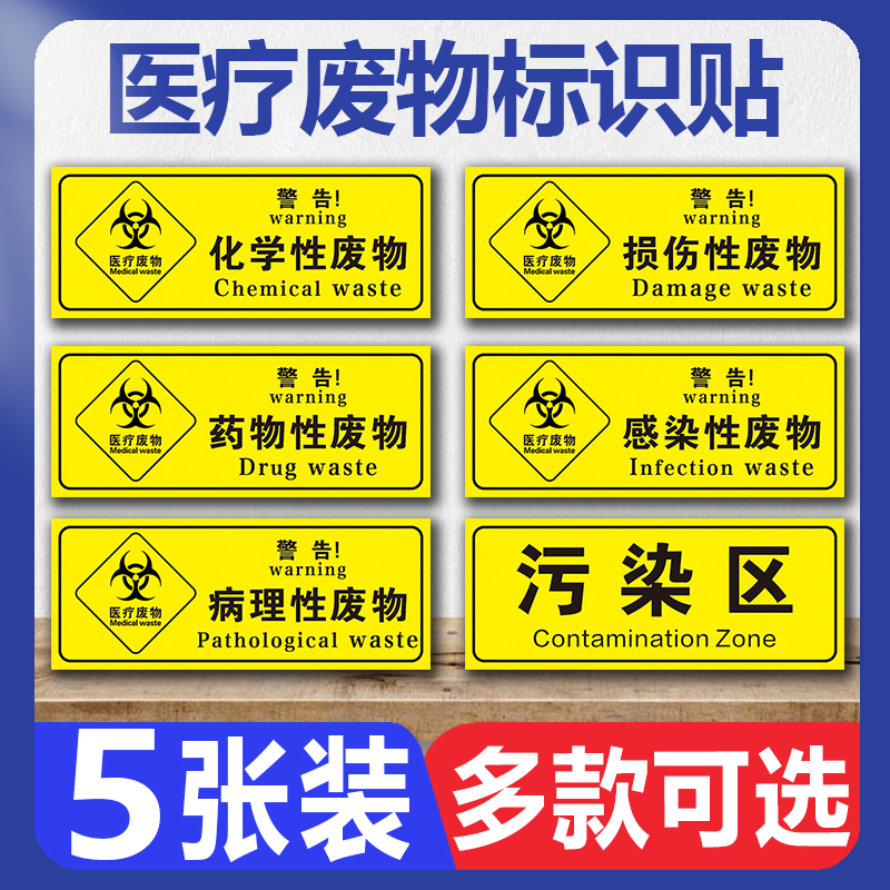 医疗废物标识牌 危废分类标签贴 医院诊所药房垃圾暂存处废弃物化学损伤性药物病理性感染性废物种类提示贴纸