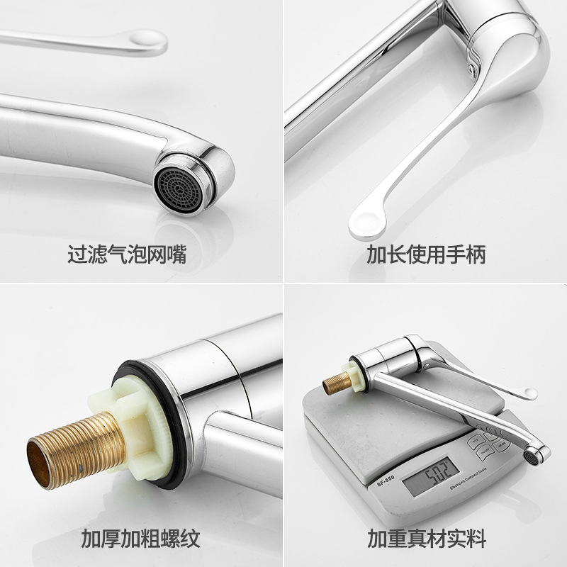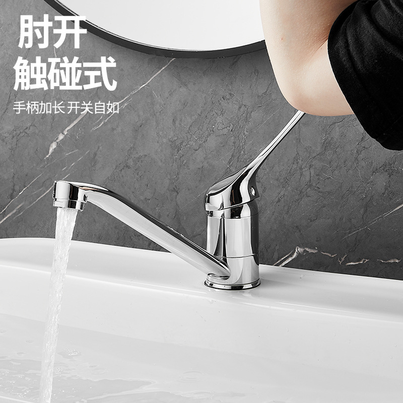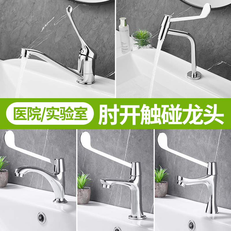 医院肘开水龙头全铜单冷医用实验室加长手柄长把手开关洗手盆龙头
