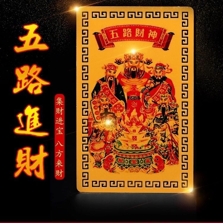 五路财神金卡符牌金箔金属片招财进宝赵公明画像转运聚财家用摆件