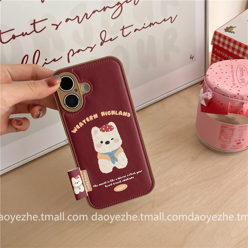 秋冬皮纹红色西高地狗vivoX200S手机壳X100高级感S20新款S19/S17可爱X90创意女S18小众X80皮质S15防摔S16pro