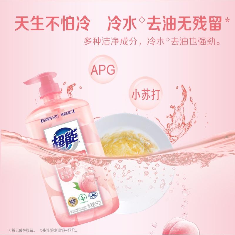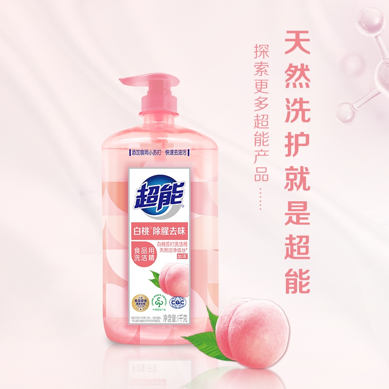 超能洗洁精白桃去腥家用实惠装按压瓶厨房祛味去油洗碗液官方正品