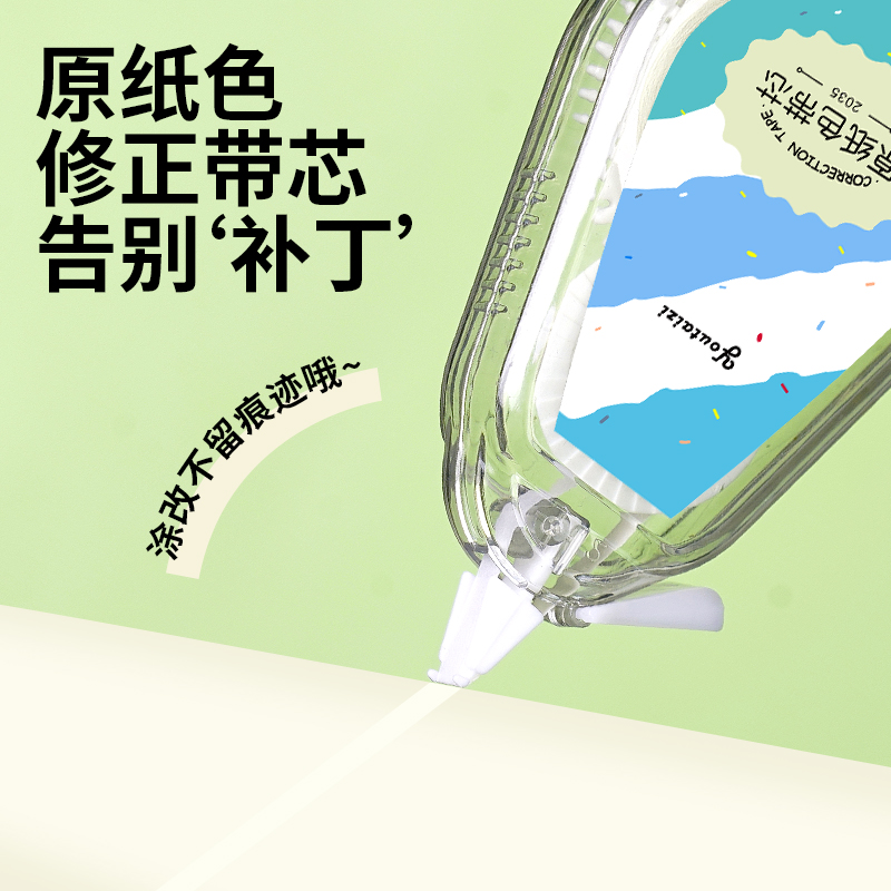 学生修正带隐形原纸色涂改带米黄色实惠装修改带本色护眼黄色高颜值改字带大容量静音初中生专用小学生透明