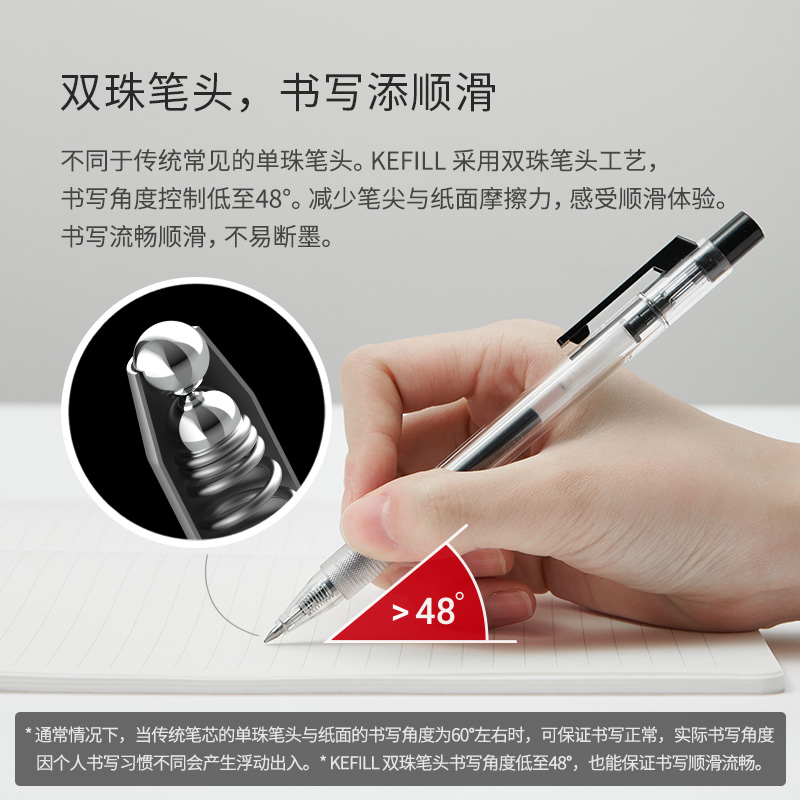 KACO笔芯替换芯亚规双珠笔芯书源菁点凯宝0.5按动笔芯进口笔芯替通用中性笔芯学生用中高考常备双珠笔