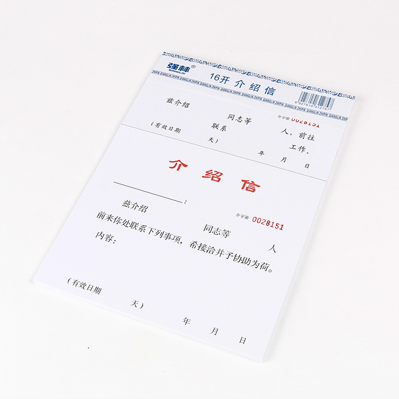 强林 822-16介绍信 联系工作介绍信介绍信 财务会计 办公文具 单本价格