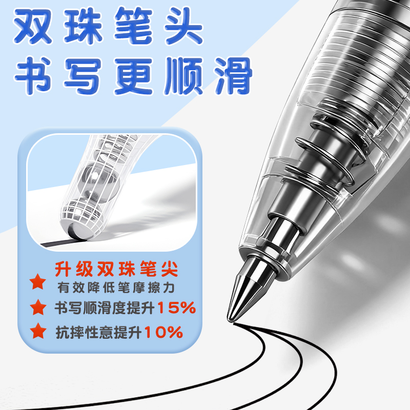 知远点石巨能刷刷题笔D形笔杆双珠速干按动中性笔0.5mm简约颜值考试签字黑红蓝顺滑大容量水性笔0205点石制笔