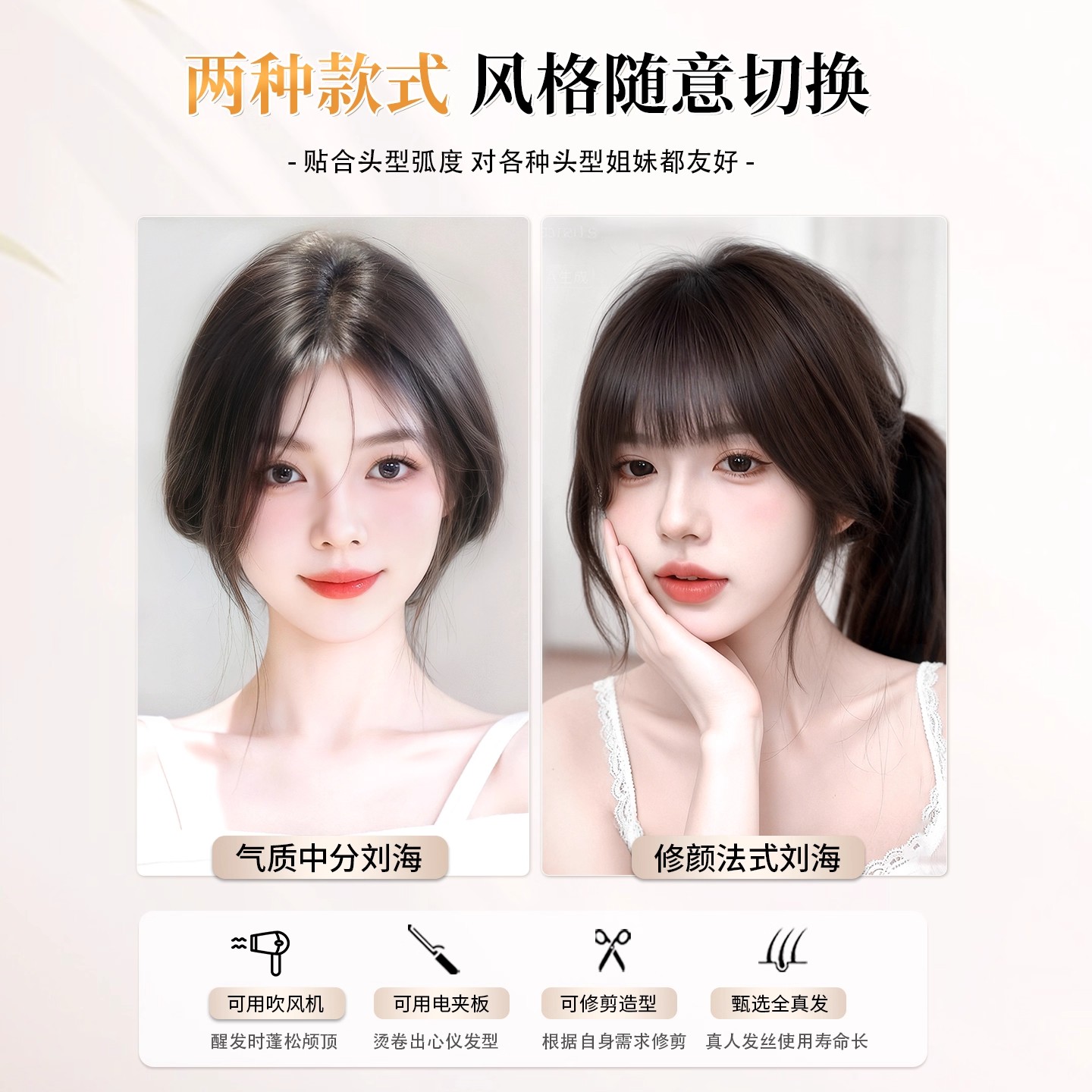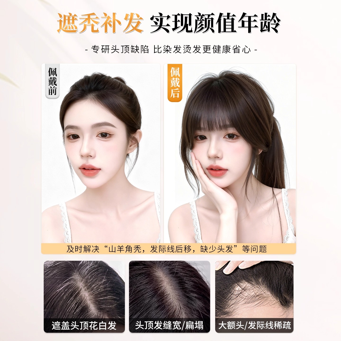 刘海假发女片头顶真发遮白发蓬松高颅顶增发量自然无痕假刘海前额