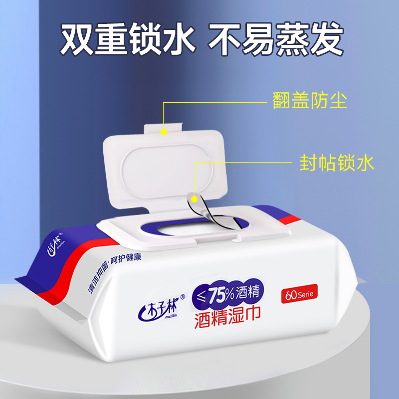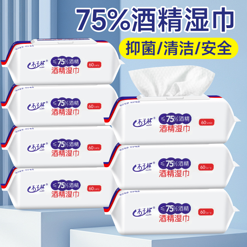 60抽含75度酒精消毒湿巾家用卫生专用清洁杀菌湿纸巾家庭实惠装