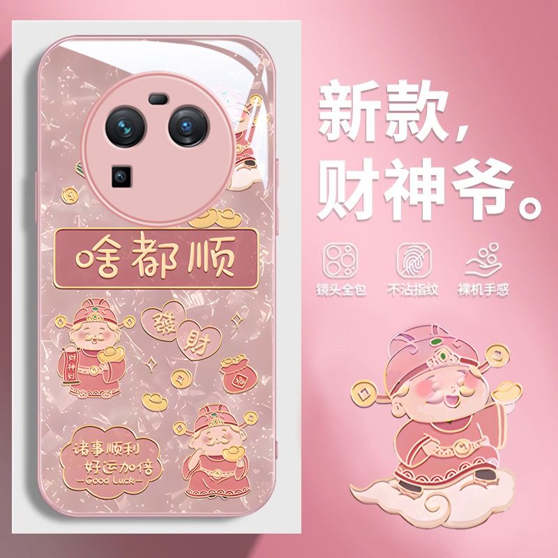 适用oppofindx6手机壳玻璃PGFM10啥都顺opopfindx6pro保护套PGEM10全包边防摔5g新年款喜庆pr0财神网红高级女