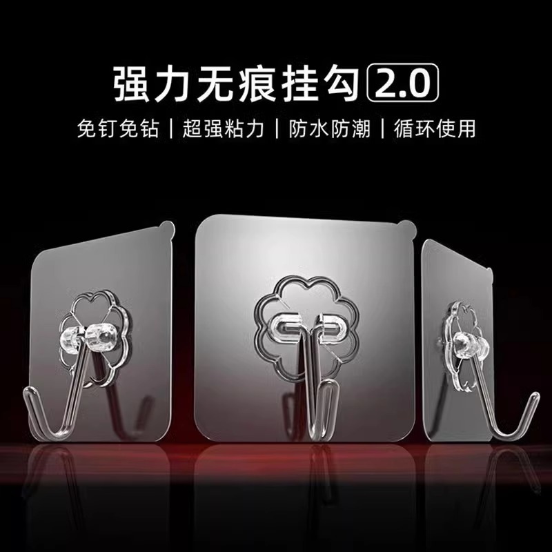 【劲欢】2025年新品挂钩强力粘胶免打孔厨房门后透明无痕粘钩浴室卫生间墙上承重挂勾