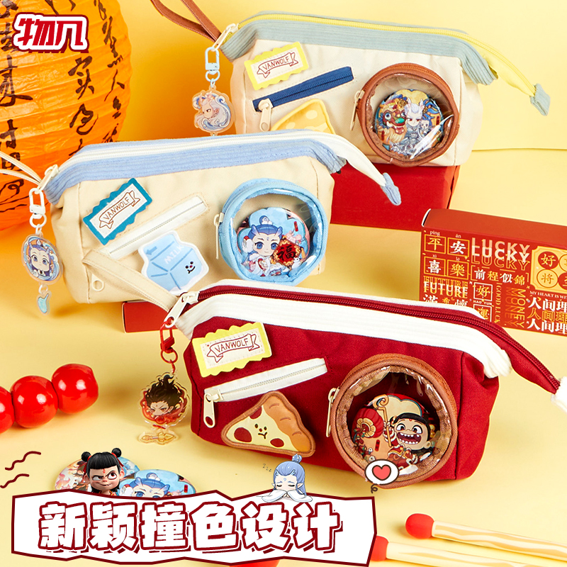 物几 哪吒笔袋高颜值ins风撞色2025超火女生新款可爱食物痛包铅笔盒简约大容量不撞款文具收纳袋男生文具盒