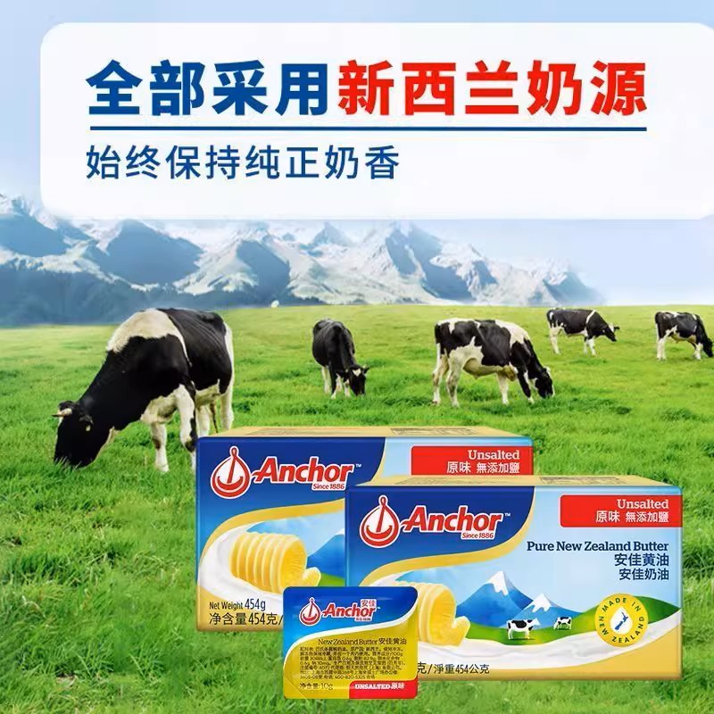 安佳动物黄油原味454g*2家用商用进口烘焙专用材料牛排奶油咸味