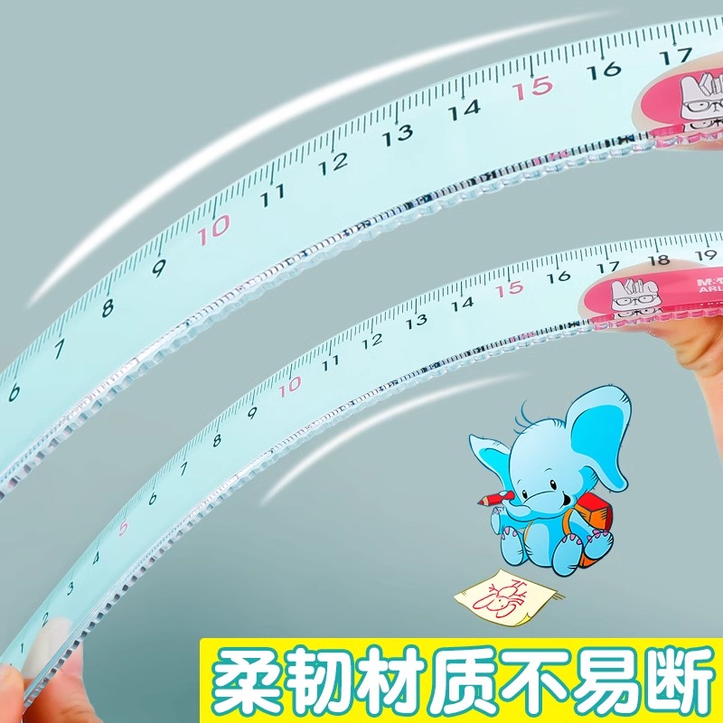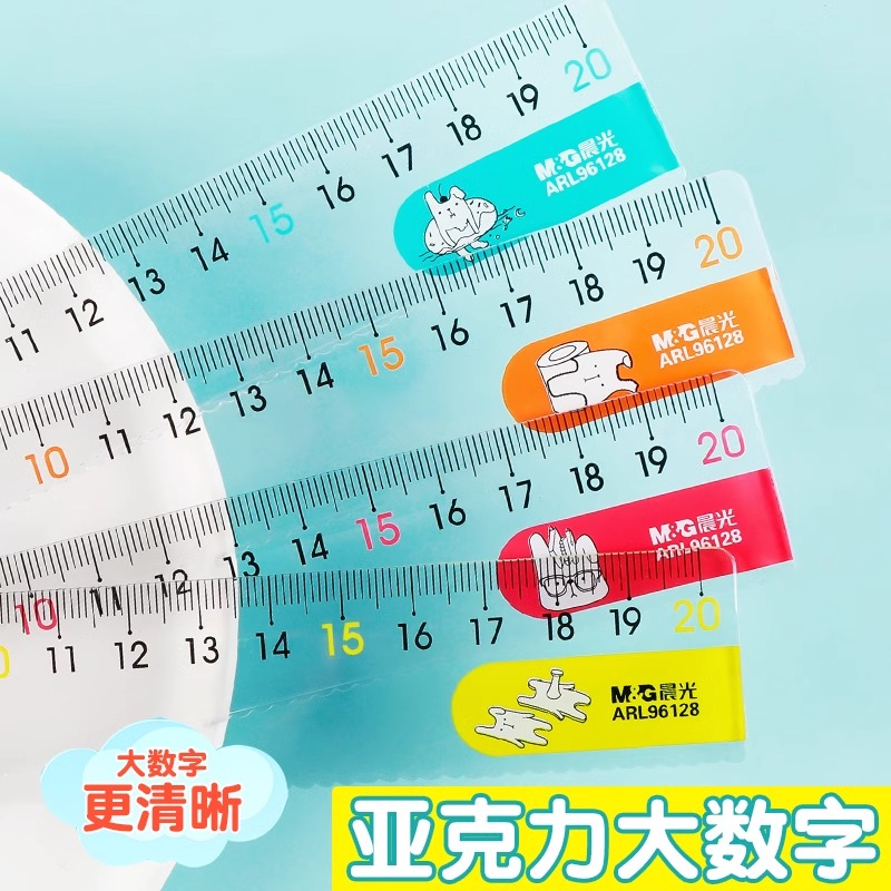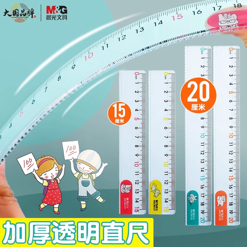 晨光直尺子15cm/20cm直尺小学生专用儿童格尺多功能一年级二塑料学生直尺带波浪线高颜值透明尺子测量刻度尺
