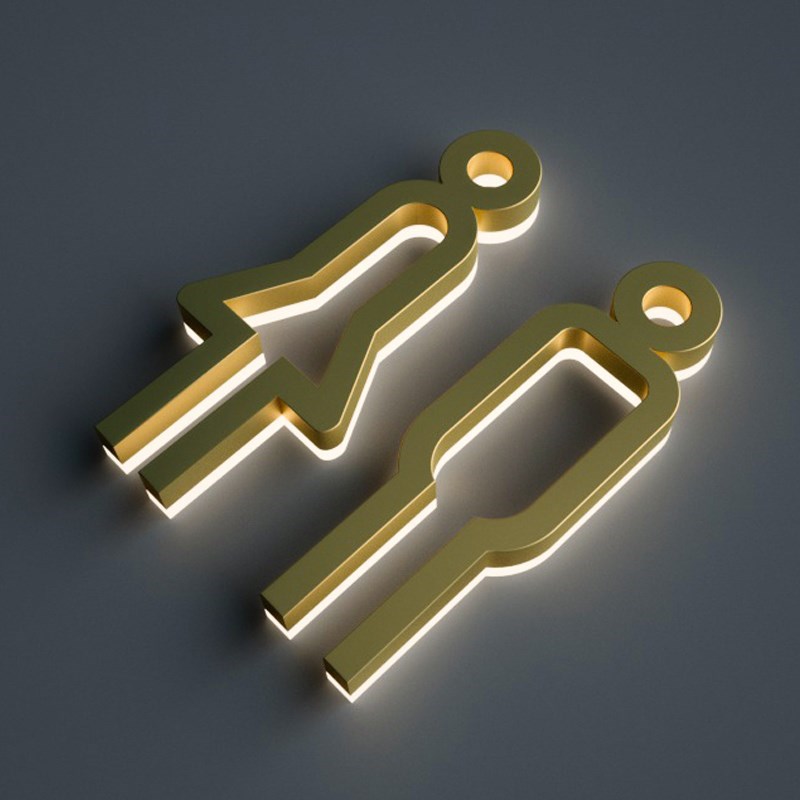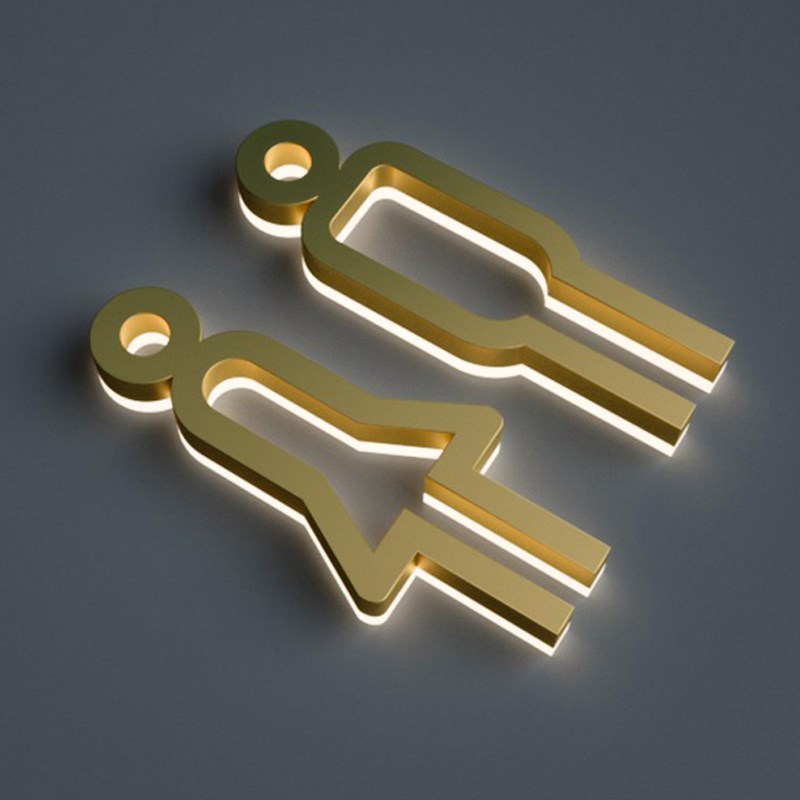 不锈钢发光卫生间标识牌男女洗手间指示牌发光字水晶字厕所标志