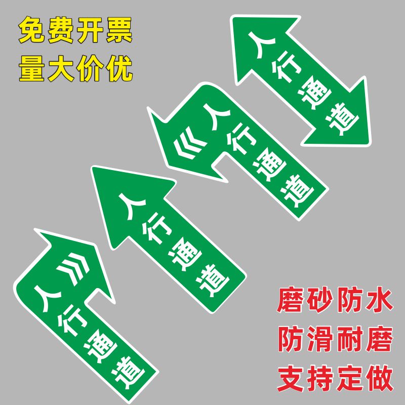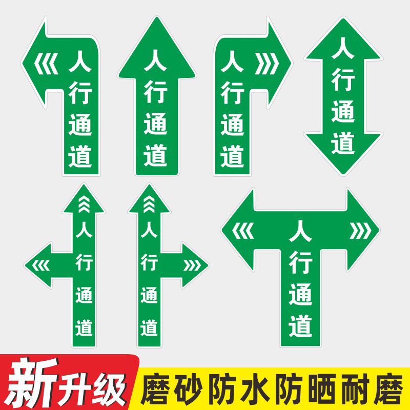 人行通道指示贴左转右转通道标识贴地面指引地贴行人过道地标贴T型十字型防水耐磨PVC标示贴各种通道地贴定做