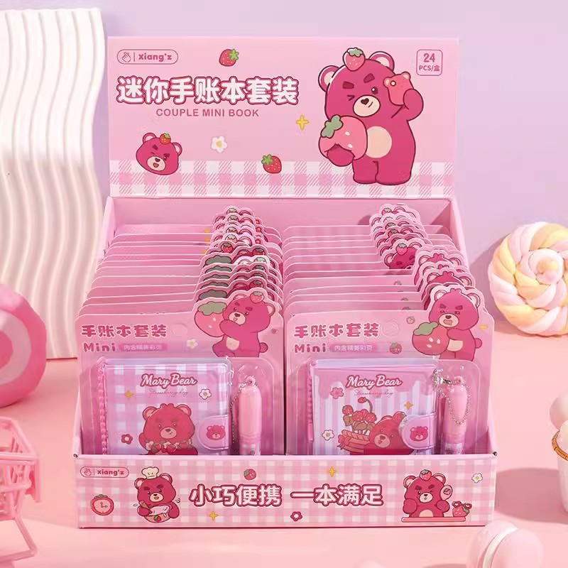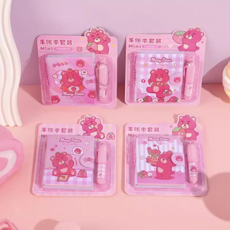 卡通迷你手账本莓莉熊分享本可爱挂件小本子彩色内页手杖本可爱高颜值糖果丸子少女心女生对对本学生小本