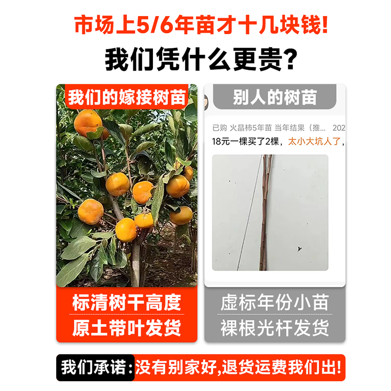 无核脆甜柿子树果苗嫁接庭院果树特大号盆栽矮化耐寒火晶柿子树苗
