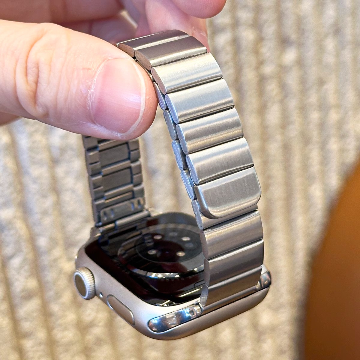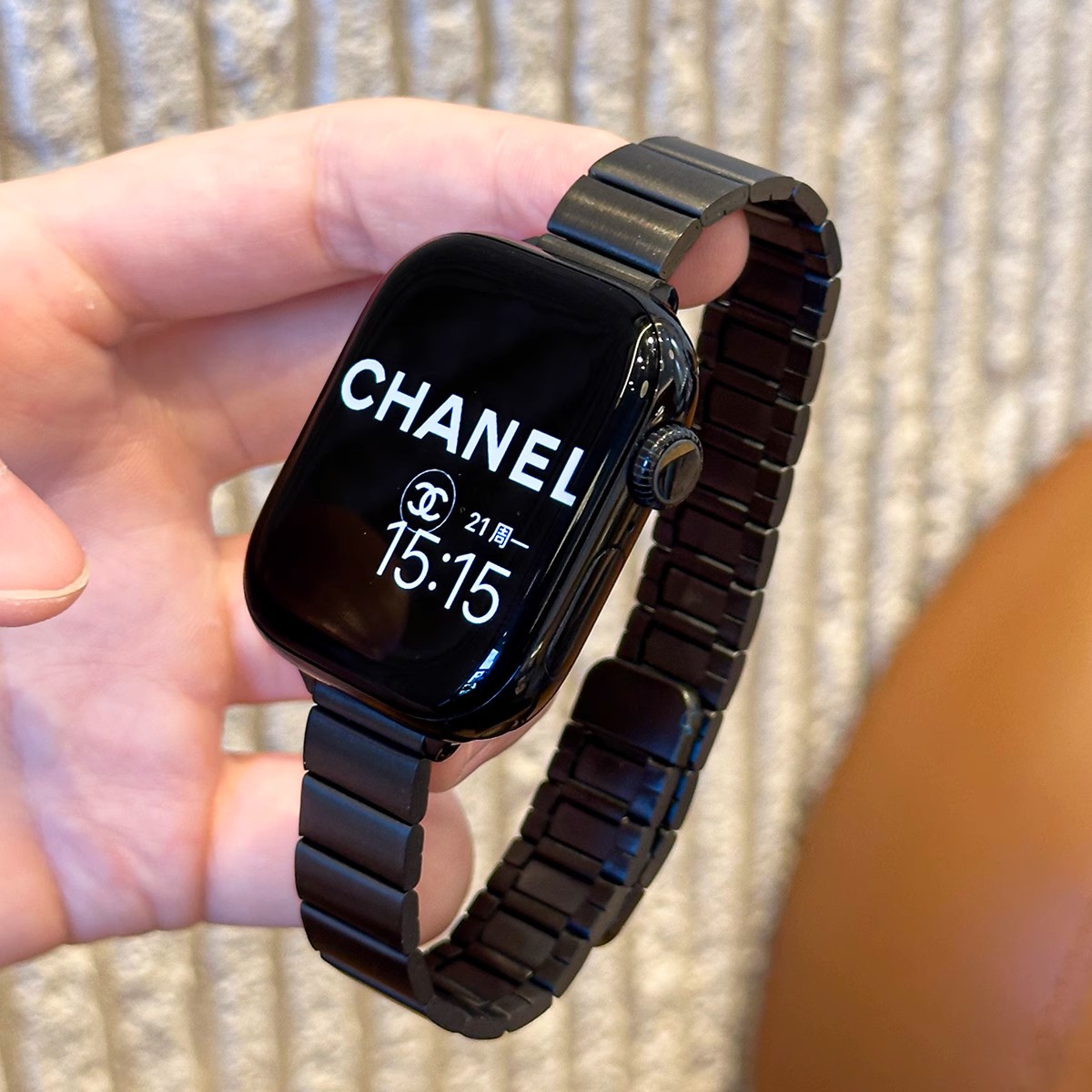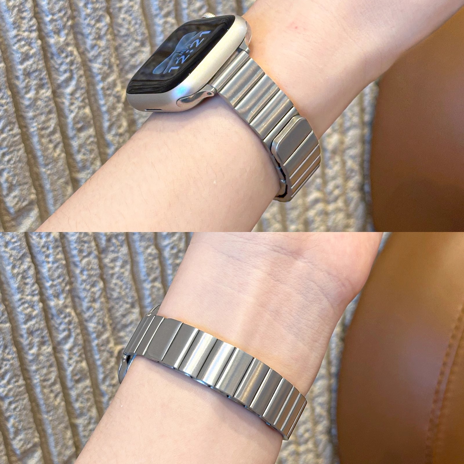 表带适用applewatch竹节磁吸金属细iWatch10/9/8/7小蛮腰钢带不锈钢苹果手表se高级腕带女夏季黑色表盘银色