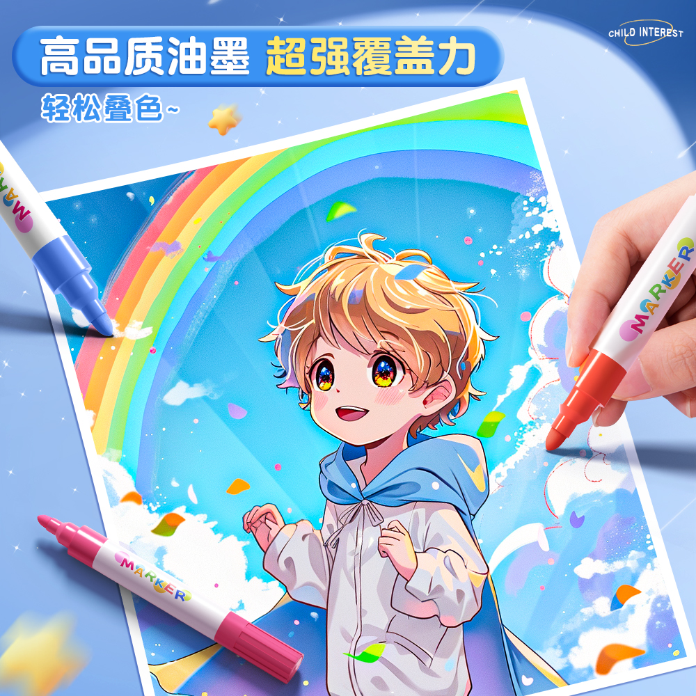 丙烯马克笔小学生专用幼儿园丙稀不透色可叠色水彩笔笔芯画笔儿童无毒可水洗美术画画彩笔比心2412色24色48色