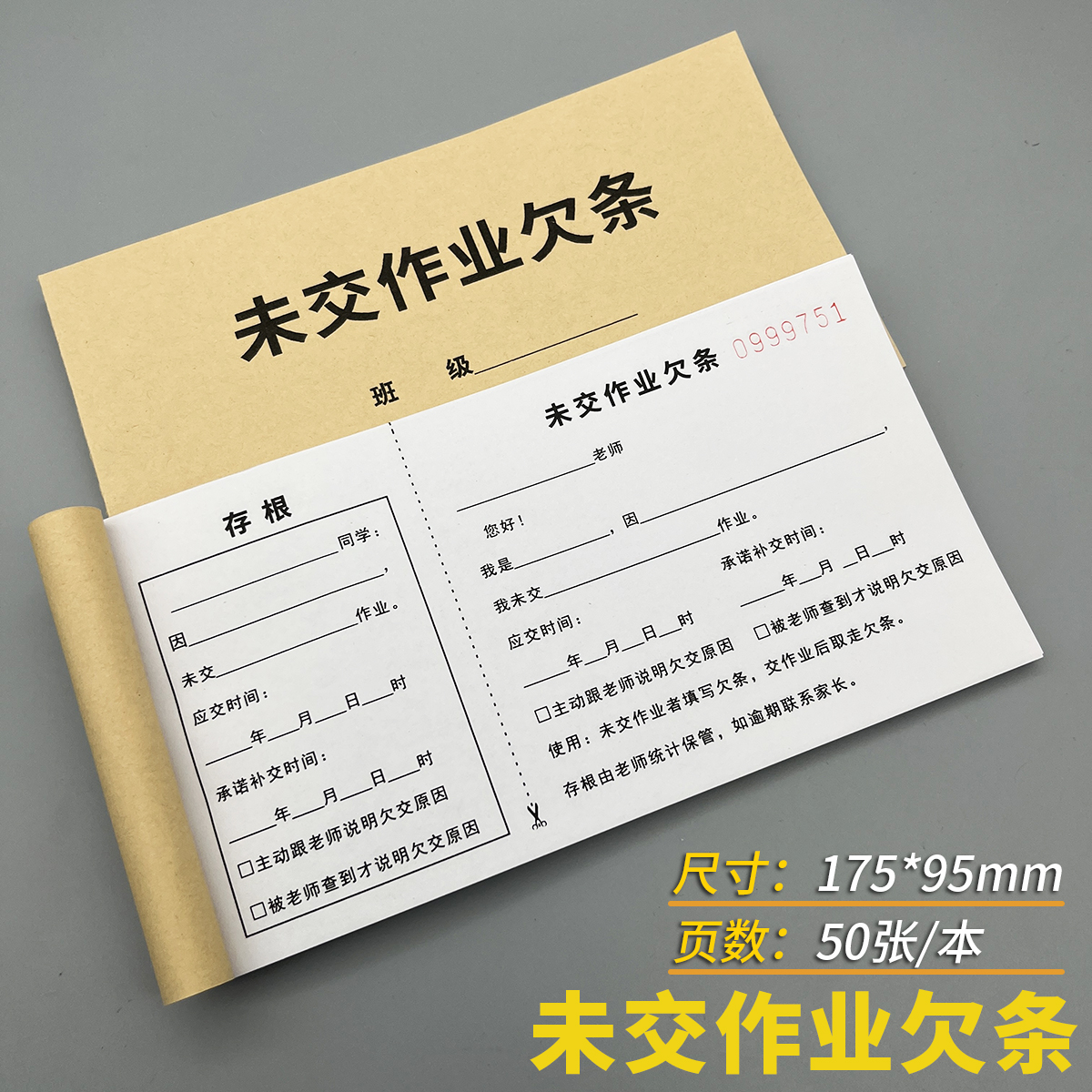 学生未交作业欠条存根版小学初中班级管理各科作业未完成未上交提醒单新万多能欠条未按时提交作业缓交单定制