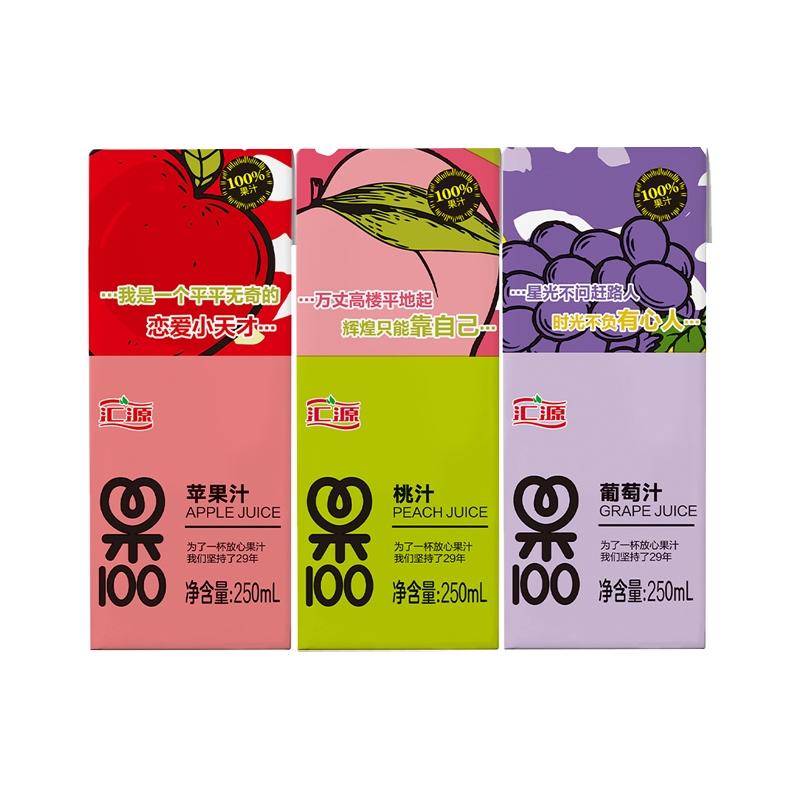 【专注好果汁】汇源100%苹果汁桃汁250ml*4盒多口味清爽解腻饮料