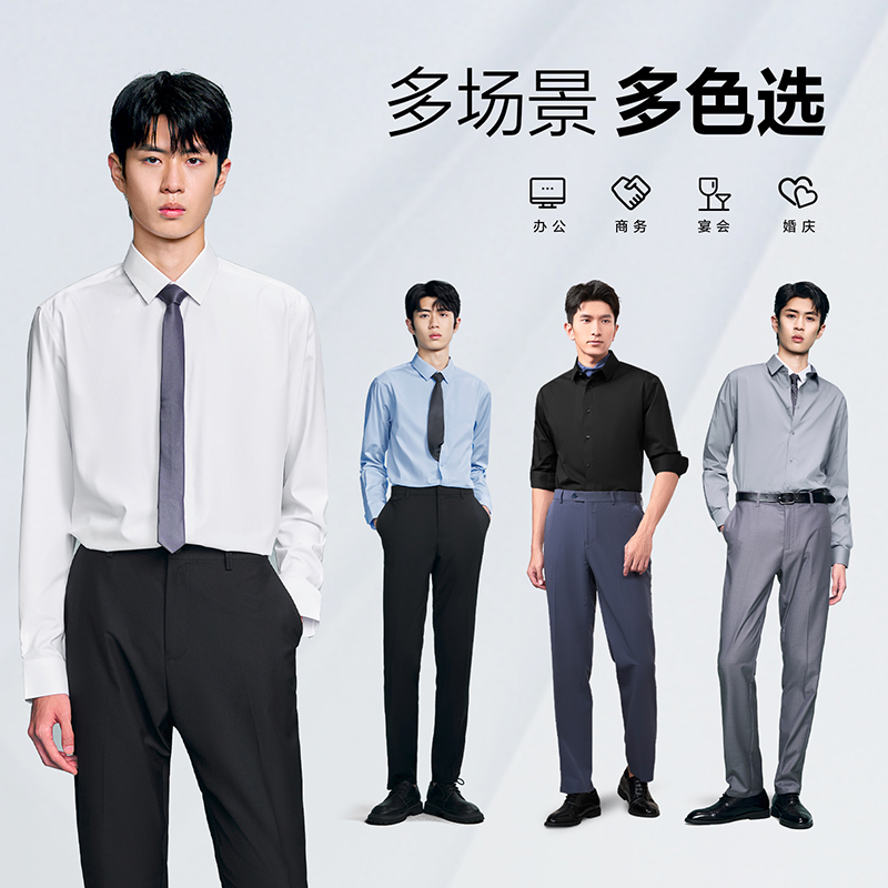 错位上袖 平圆方中男士白色长袖衬衫抗皱春夏新款商务正装衬衣男