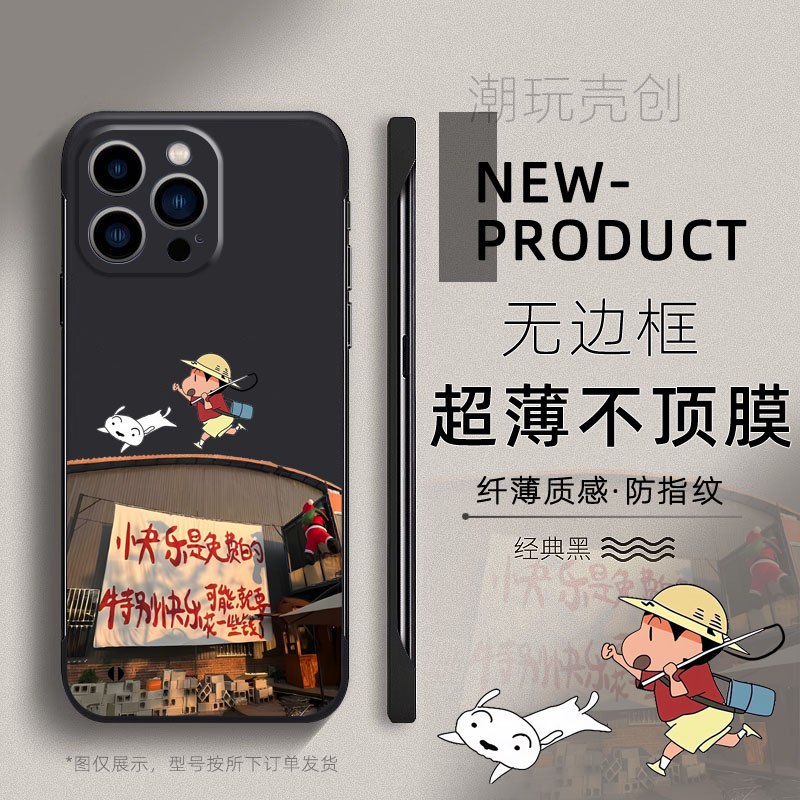适用于苹果16promax手机壳15pro快乐是免费蜡笔小新14plus新款13个性11pro防摔8超薄无边框12mini半包边X硬壳