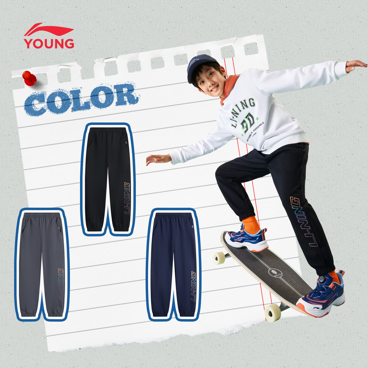 李宁童装卫裤男女小大童运动生活系列长裤春季裤子束脚针织童装
