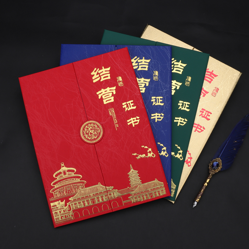 结营证书三折A4外壳定制做烫金研学证书奖状定制夏冬令营证书旅行探学社会实践证书荣誉结业证书内页设计打印