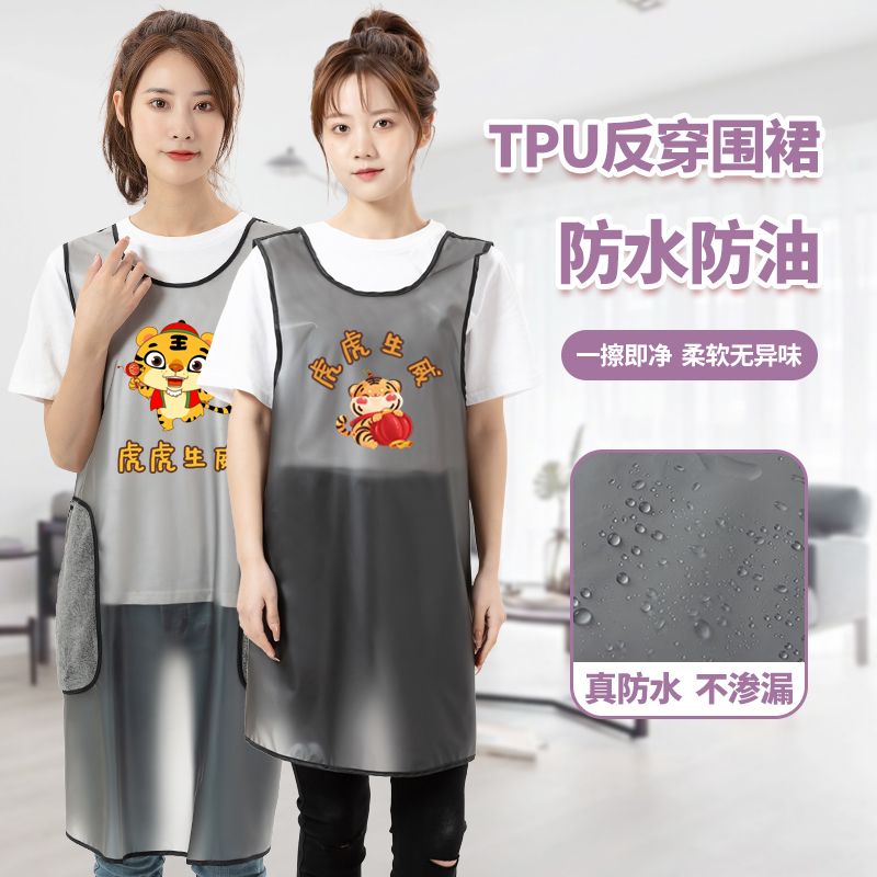 围裙女家用厨房防水防油软皮做饭罩衣工作服围腰时尚反穿衣