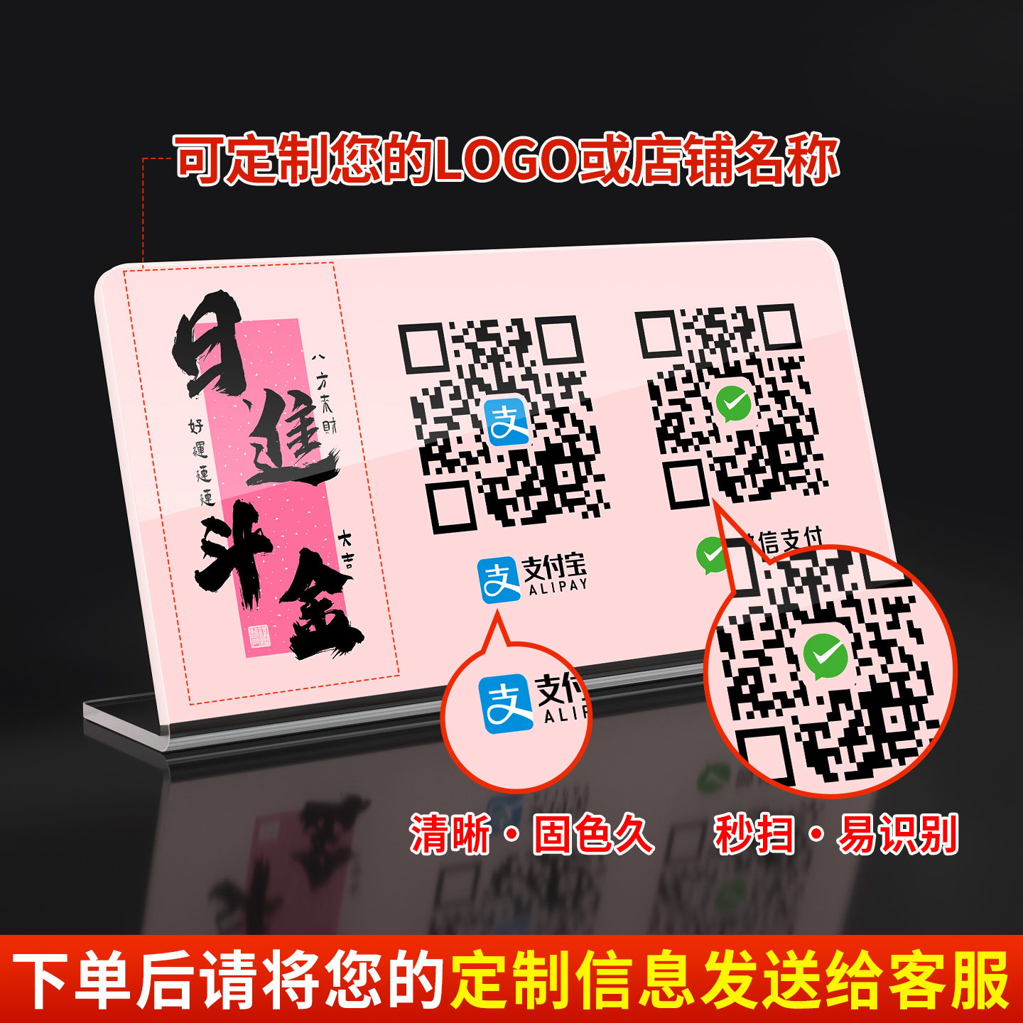 扫码点餐立牌二维码展示牌收款码摆台高级感定制酒店前台餐厅吧台饭店微信支付收付款加好友信息提示牌子制作