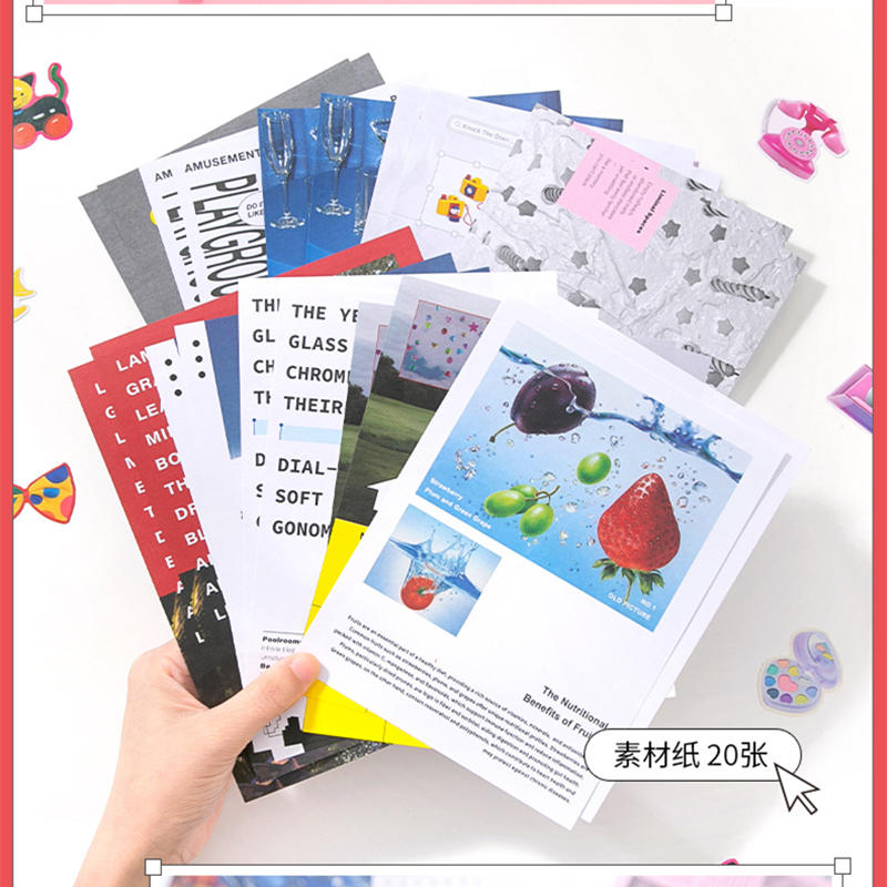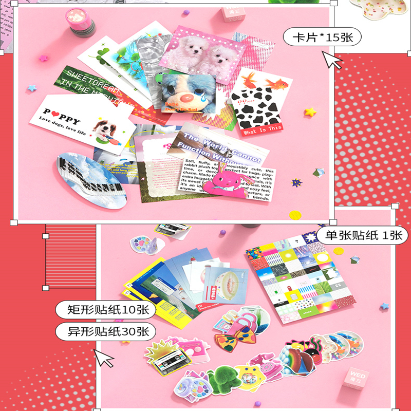 (手帐装饰的最后一站)94件套手账机关DIY素材包网红手帐硫酸纸贴纸M5透卡标签纸背景纸手帐本全套装ins风