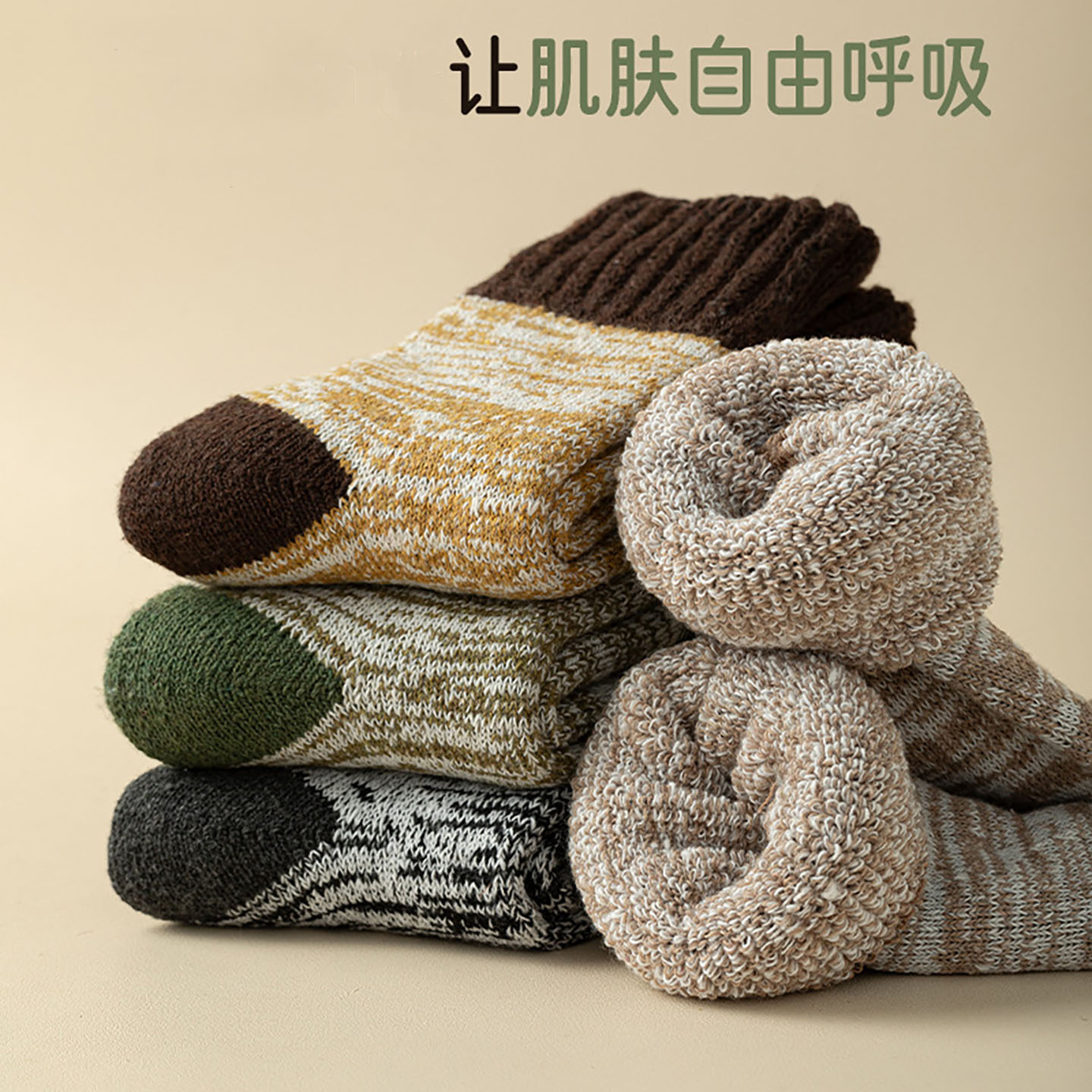 冬季新品袜子男中筒袜并线毛圈加绒加厚毛袜