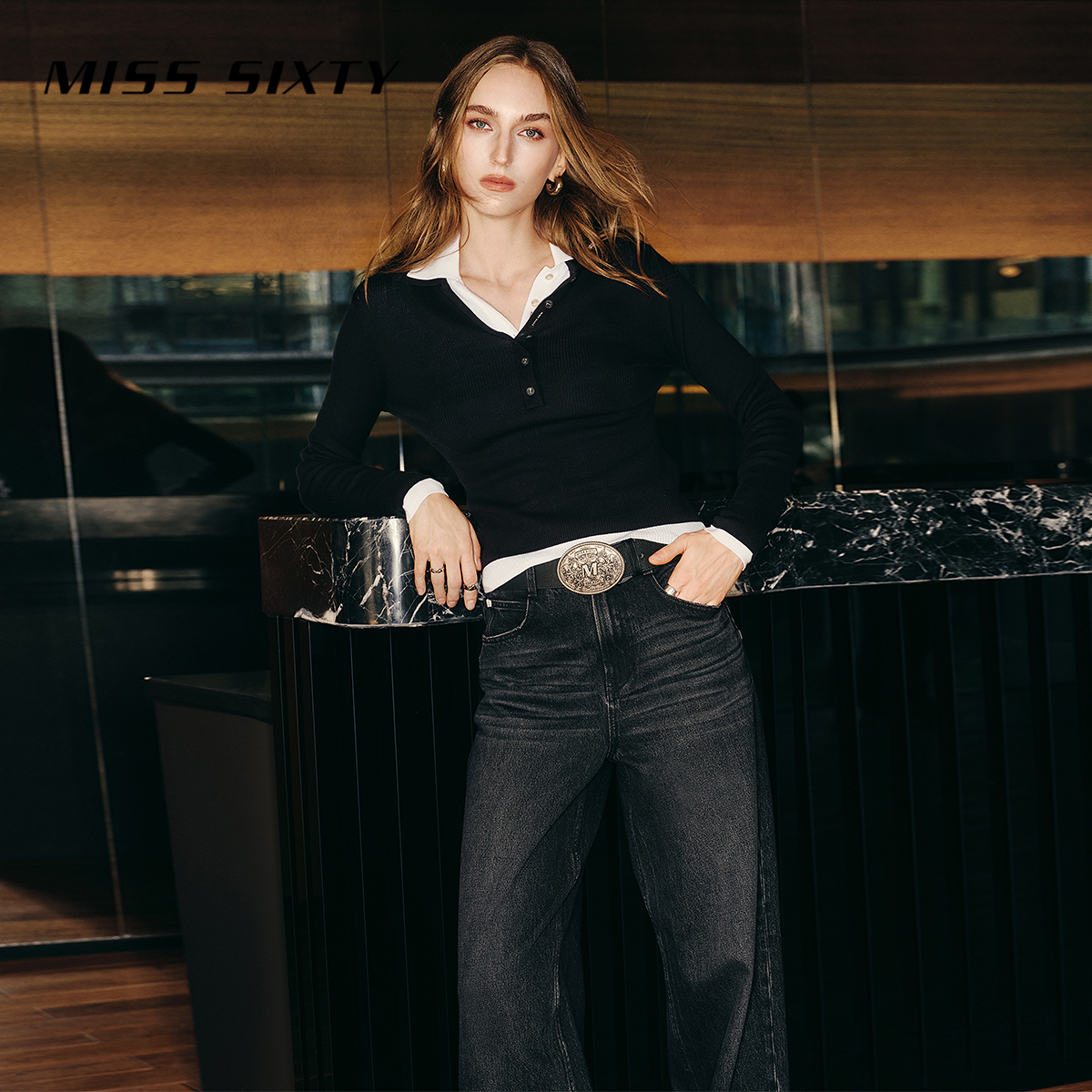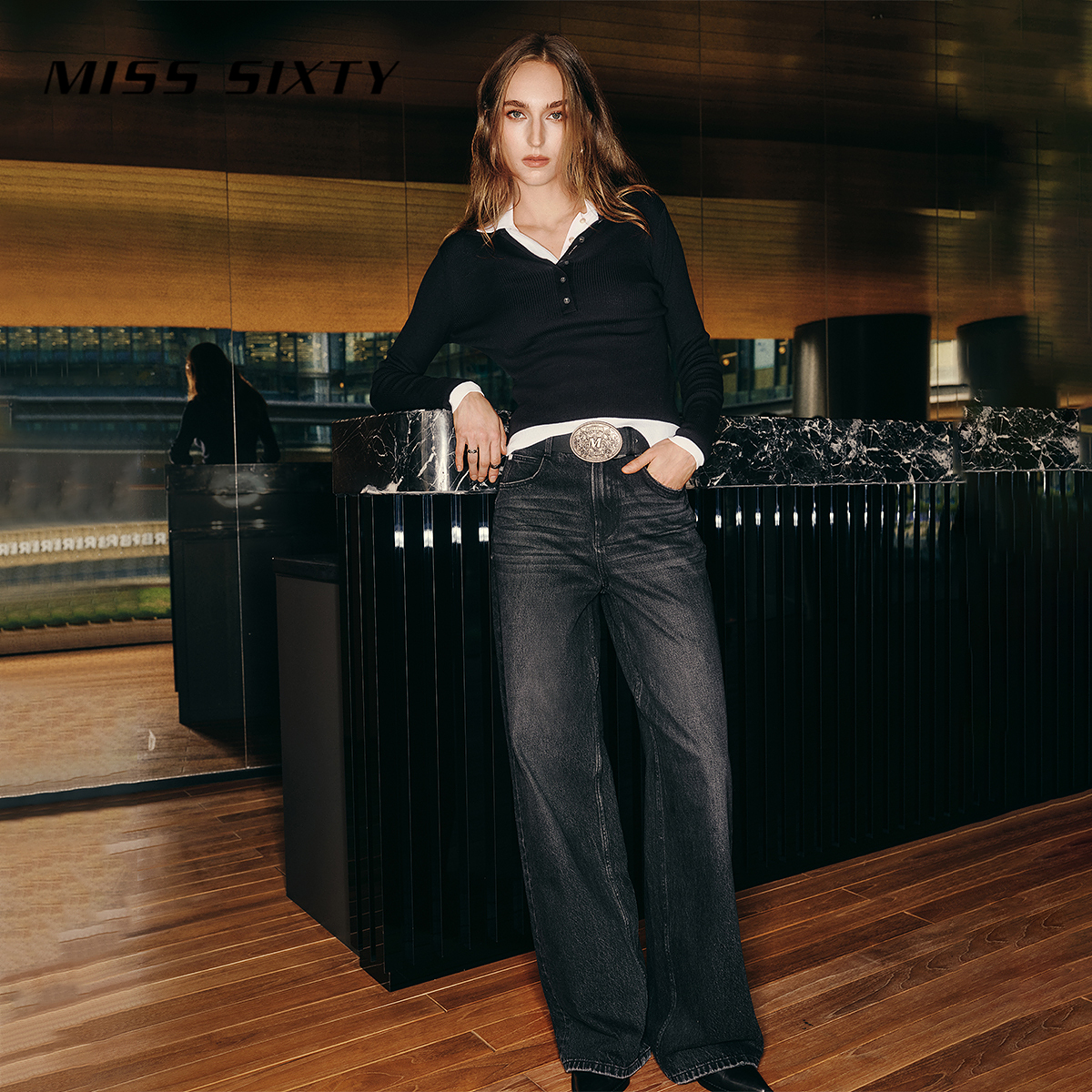 Miss Sixty棉质牛仔裤女磨白复古洗水高腰显瘦梨形宽松阔腿裤