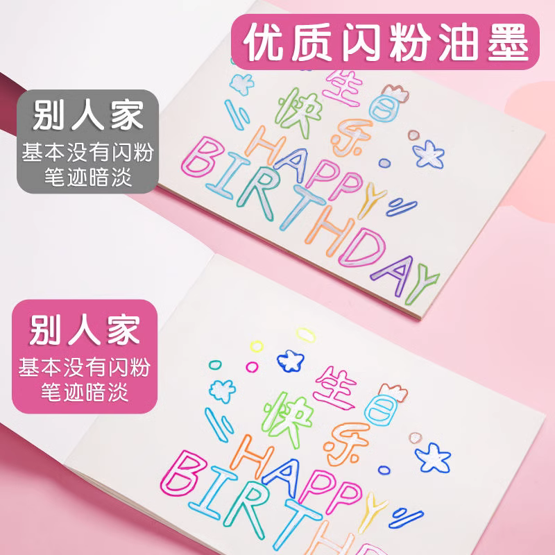 彩色闪光笔啫喱发光亮晶晶流沙银光变色做手账的手帐专用儿童莹光做笔记珠光标记闪亮金属轮廓闪粉水彩笔荧光