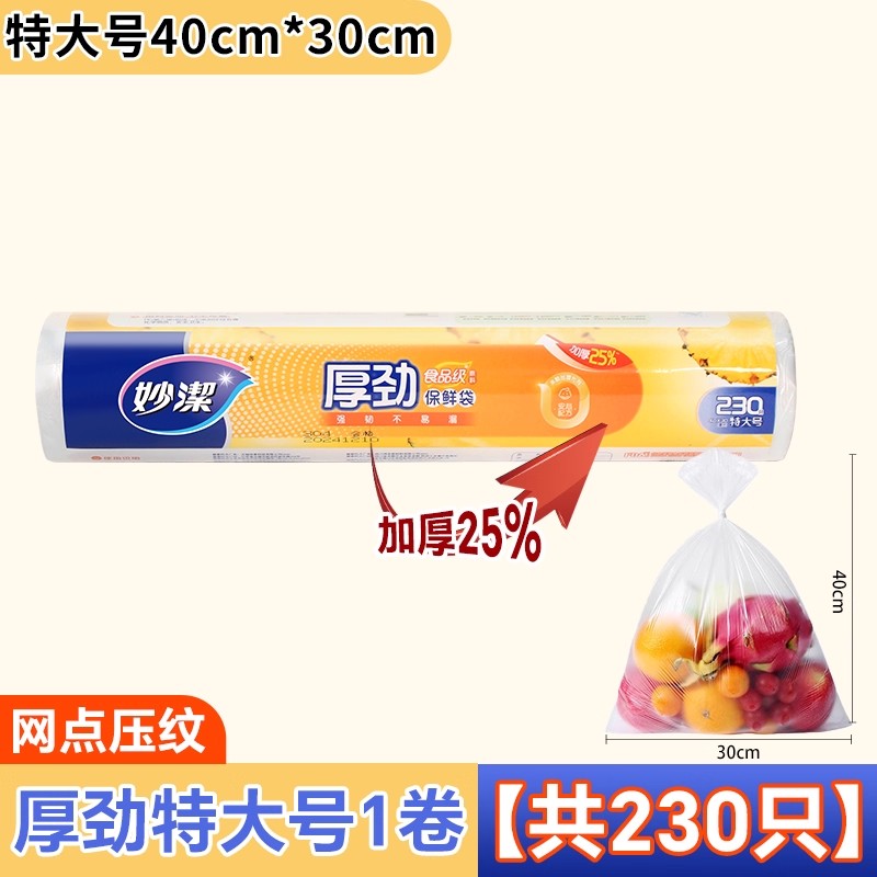 妙洁加厚点断式保鲜袋食品级家用厨房冰箱冷藏适用食品袋特大号