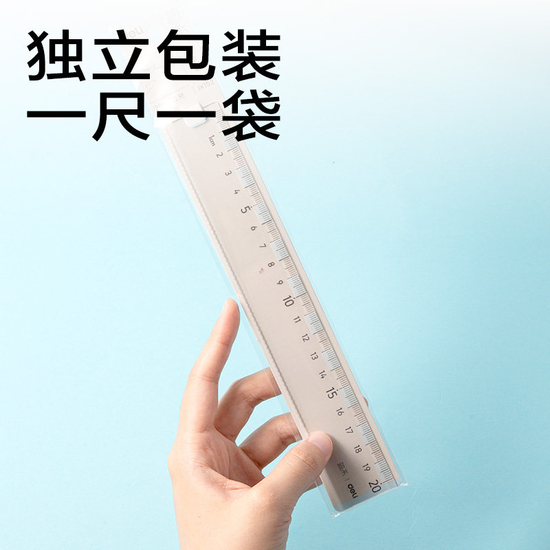 得力透明直尺带波浪线尺子小学生一年级格尺多功能专用高颜值量角器绘图测量几何刻度绘图函数尺文具用品套装