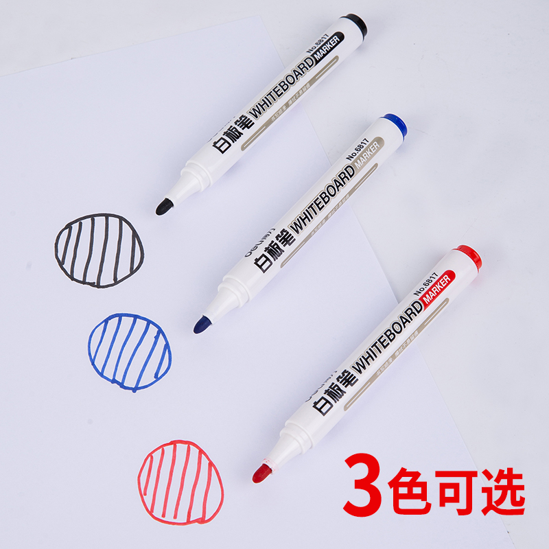 得力可擦白板笔教师用水性黑色儿童彩色红色黑板笔画板笔写字笔易擦写粗头大头记号笔可擦除专用细头大号