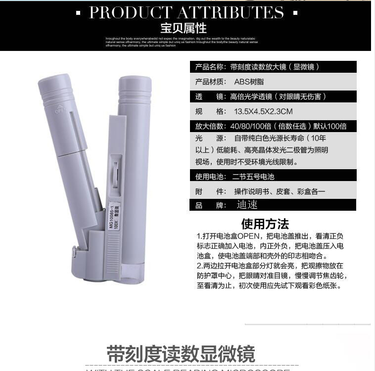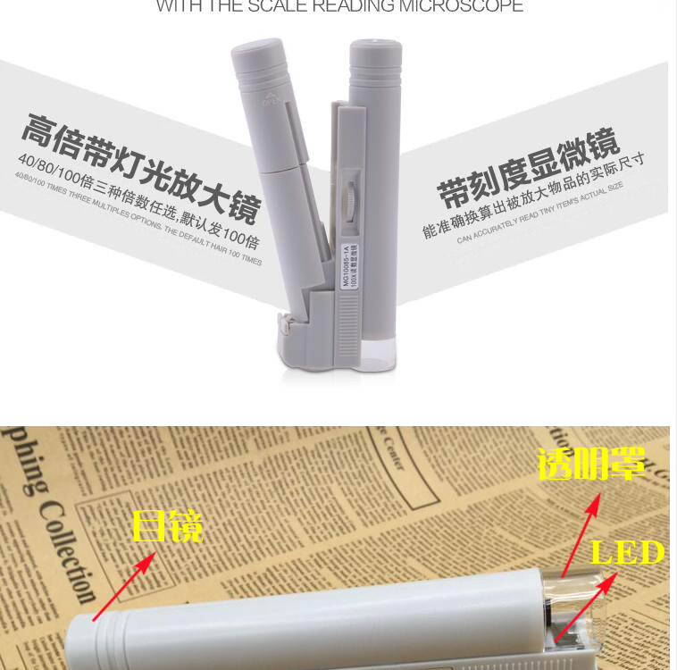 印刷网点放大镜100倍带灯光40倍80倍高倍珠宝鉴定照布手持显微镜