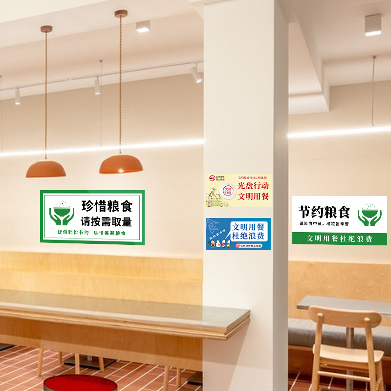 文明用餐标语杜绝浪费贴纸墙贴光盘行动贴纸食堂餐厅饭店节约粮食提示牌按需取量禁止浪费宣传标语台卡摆台