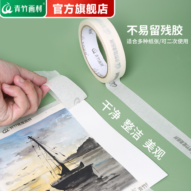 青竹美纹纸胶带美术生专用绘画素描贴边无痕纸胶布美缝装修喷漆分色美纹贴纸胶手撕可书写胶遮蔽高粘度墙面