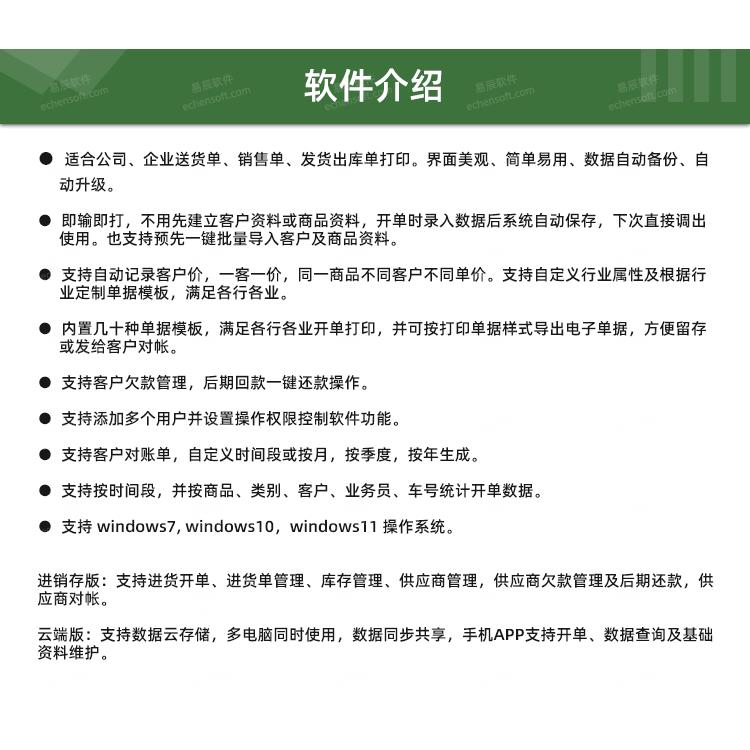 易辰送货单打印系统软件销售清单发货单进销存库存出货管理系统
