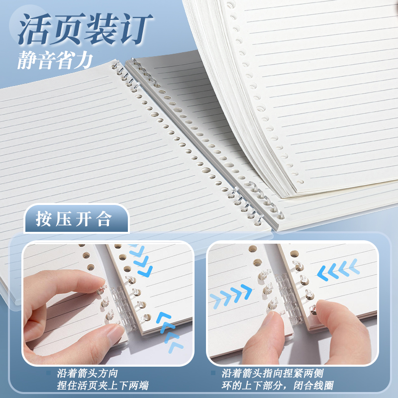 晨光活页本B5横线笔记本子A4方格网格记录本A5多规格可拆卸替芯软壳考研线圈错题本加厚纸张不咯手活页夹高中