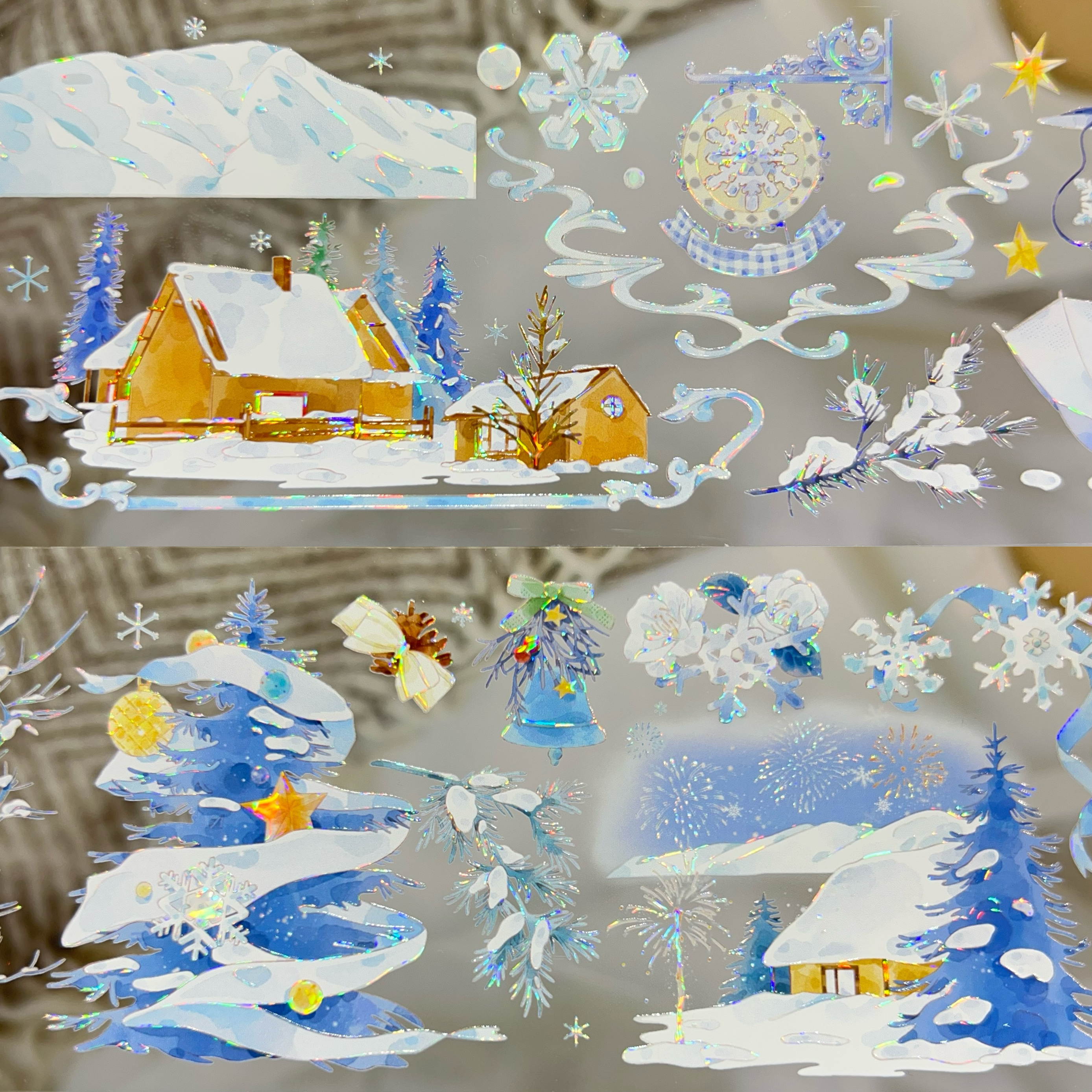 小隐于野分装手账胶带圣诞雪夜局部有雪流麻咕卡拼贴贝壳光大背景