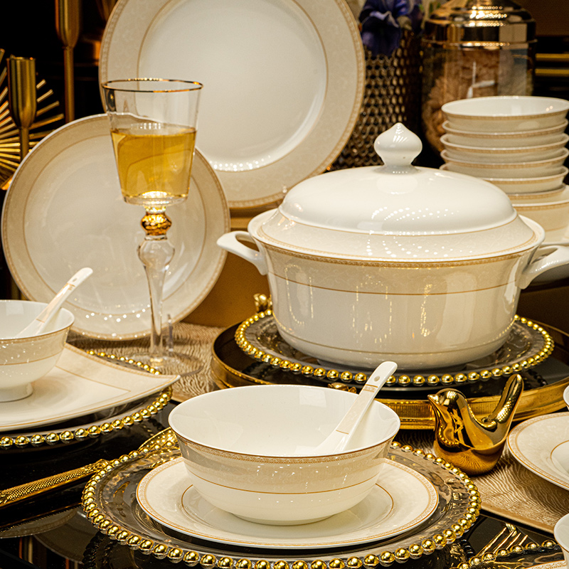 高颜值2025碗碟套装家用景德镇高温陶瓷餐具中式金边轻奢碗盘乔迁